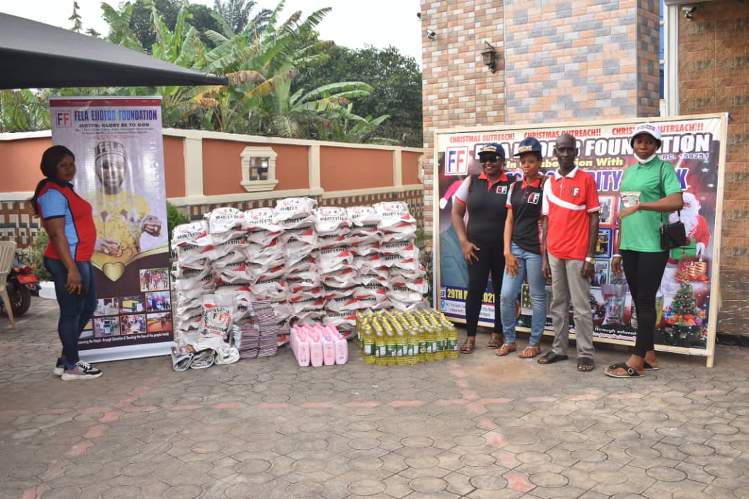 With packs of rice, groundnut oil, tomatoes and other staple food items stacked around one of the participants who gave her name as Chiamaka Osubu, speaking on behalf of the recipients, said, “I am so excited. I didn’t expect this many food items. This would last me till mid-January next year. I am thankful to FELA EJIOFOR FOUNDATION for sharing this moment with us.”